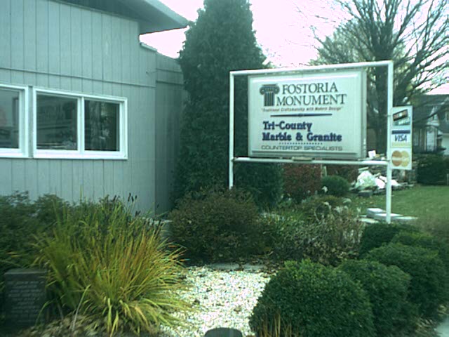 Fostoria Monument Co. is a family owned and operated business. We have been open in Fostoria, Ohio for over 90 years. The top picture was taken in the early 1920's and the middle picture is what we look like today. We currently have 4 full time employees here at the facility. We are one of the few monument dealers in NW Ohio that still do their carvings in-house. Not only do we sell and carve monuments but we also do granite signs and civic paver projects. We also fabricate granite and marble countertops at our sister company, Tri County Marble & Granite.